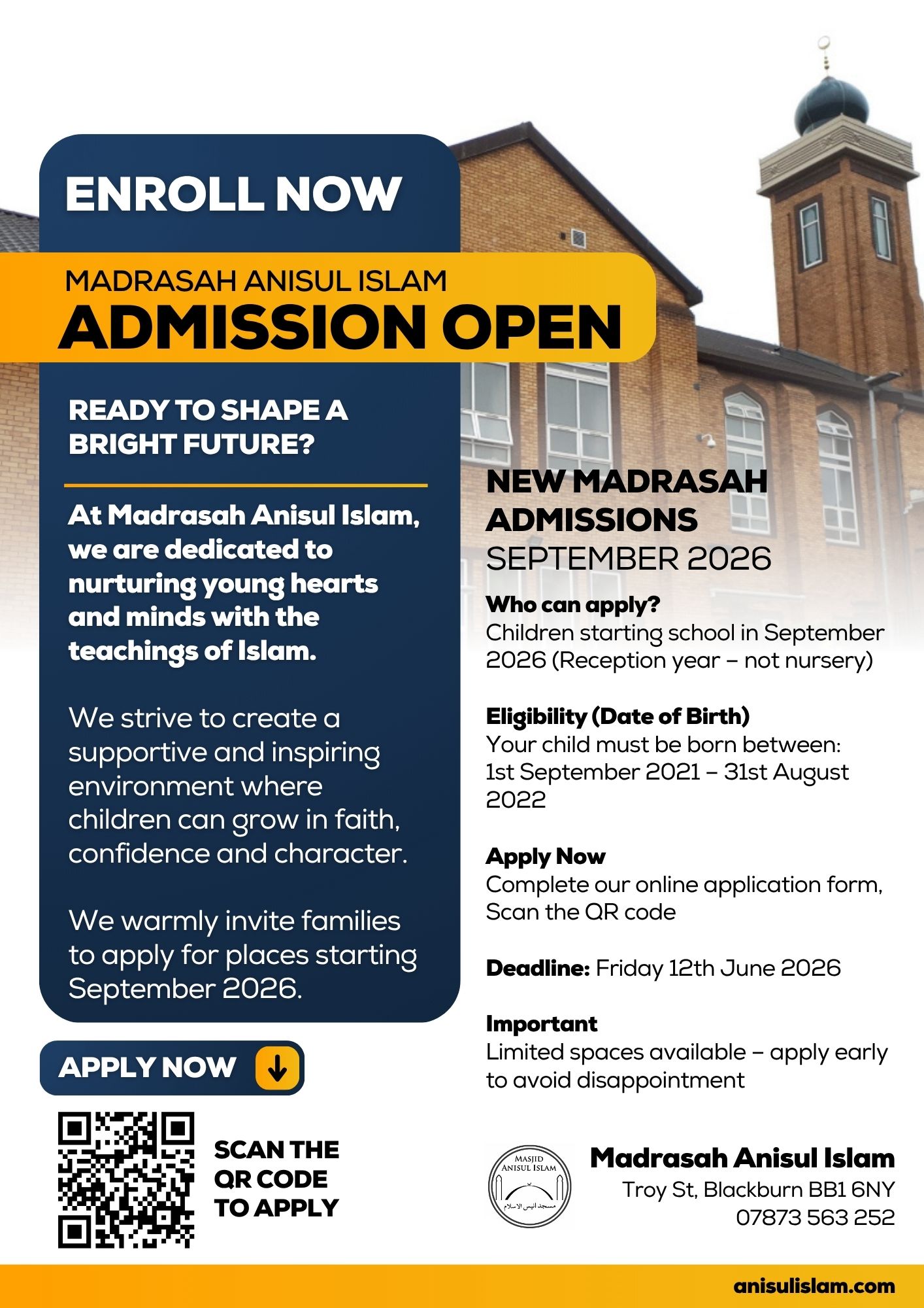 MADRASAH ANISUL ISLAM ADMISSION APPLICATION FORM FOR SEPTEMBER 2026